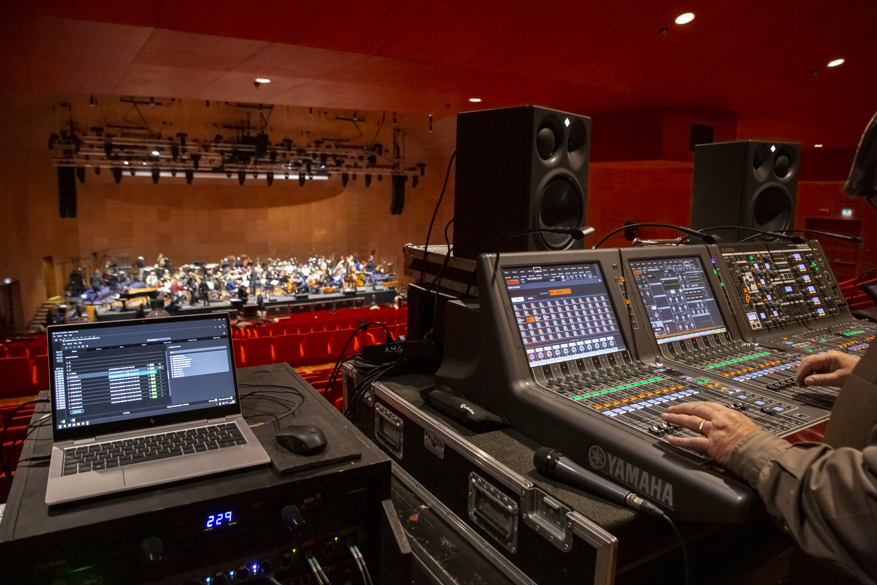 Ogni musicista dell’orchestra disponeva di un mixer personale Aviom A360, soluzione che ha consentito un controllo diretto del proprio mix e una gestione più fluida dell’intero sistema di monitoraggio.