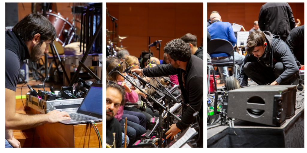 Nel complesso, la gestione di 140 canali audio e il coordinamento di orchestra, coro, band e ospiti sono stati possibili grazie a un sistema ad alta complessità e al lavoro dello staff tecnico, che ha operato con professionalità, precisione e attenzione al dettaglio per tutta la durata della produzione. Un sentito ringraziamento va a tutta la crew per l’impegno, la competenza e la dedizione dimostrati in ogni fase del progetto.